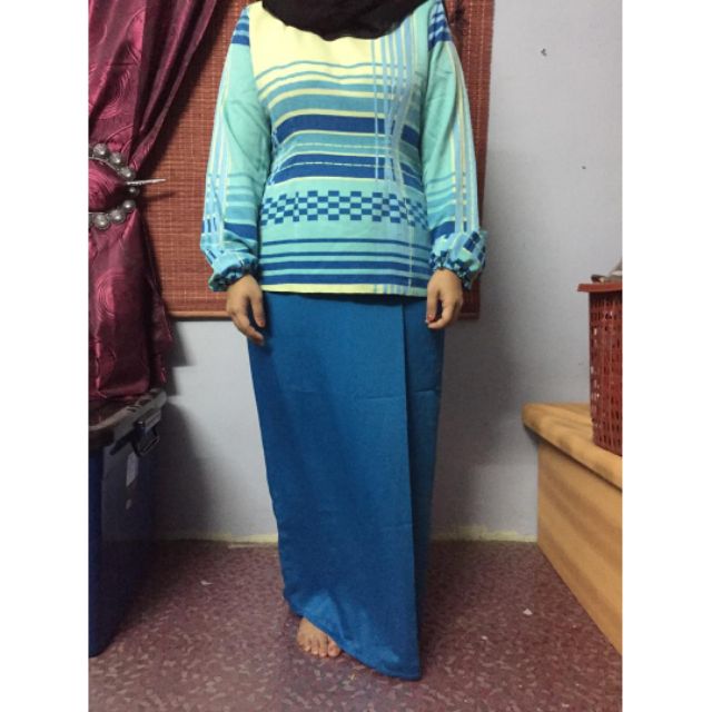 Baju Kurung Kedah Batik Cotton Premium Biru Hijau Shopee Malaysia