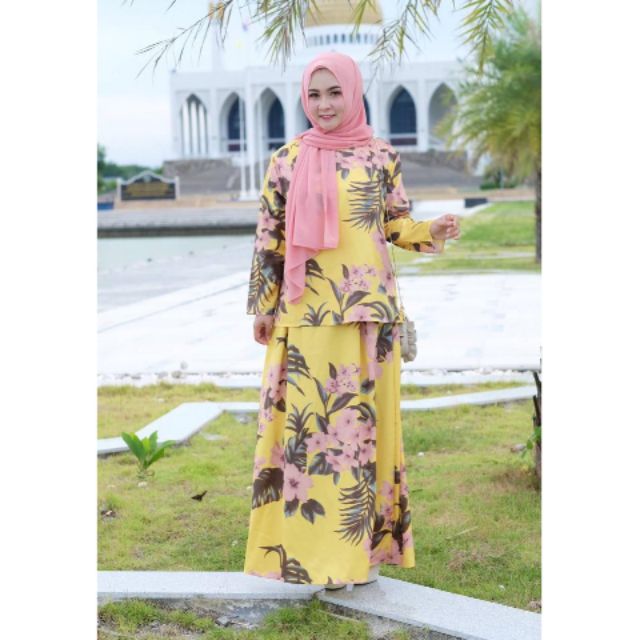 Baju Kurung Moden Kain Kembang Payung Size L Shopee Malaysia
