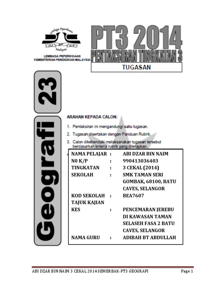 Doc Contoh Kerja Khusus Geografi Tingkatan 3 Tugasan 2 Perniagaan