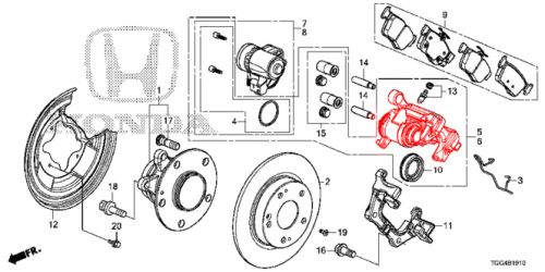 Honda Oem 17 18 Civic Type R Red Left Rear Brake Caliper K Series