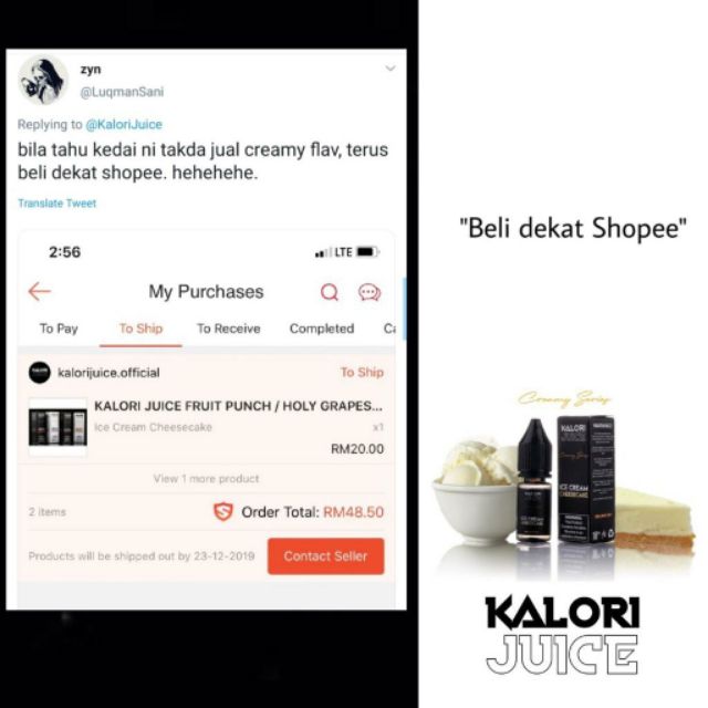 Pod Kalori Juice Ice Cream Cheesecake Shopee Malaysia
