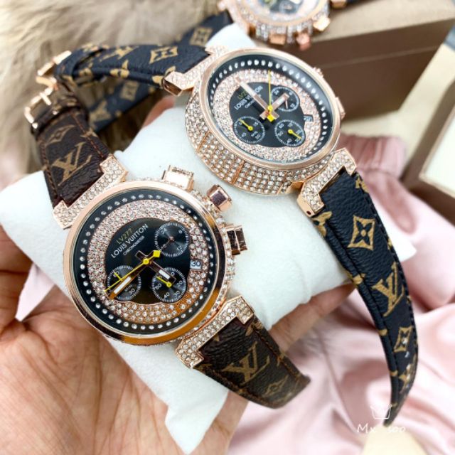 Ladies Watch Diamond Lv Leather All Function Shopee Malaysia