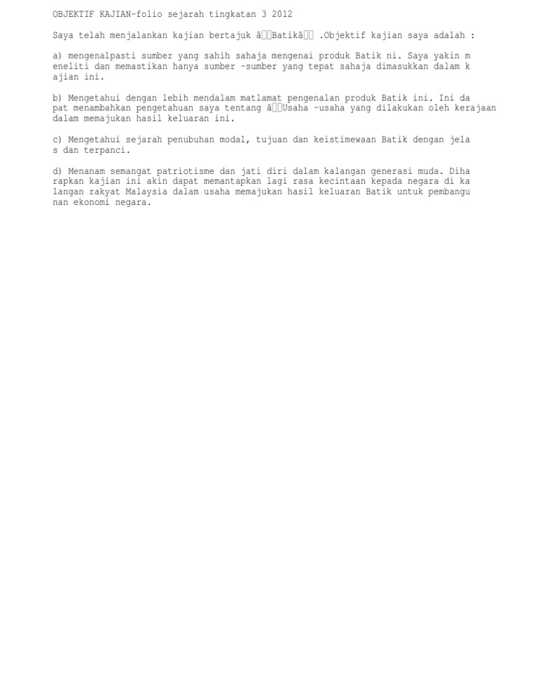 Objektif Kajian Folio Tingkatan 3 2012