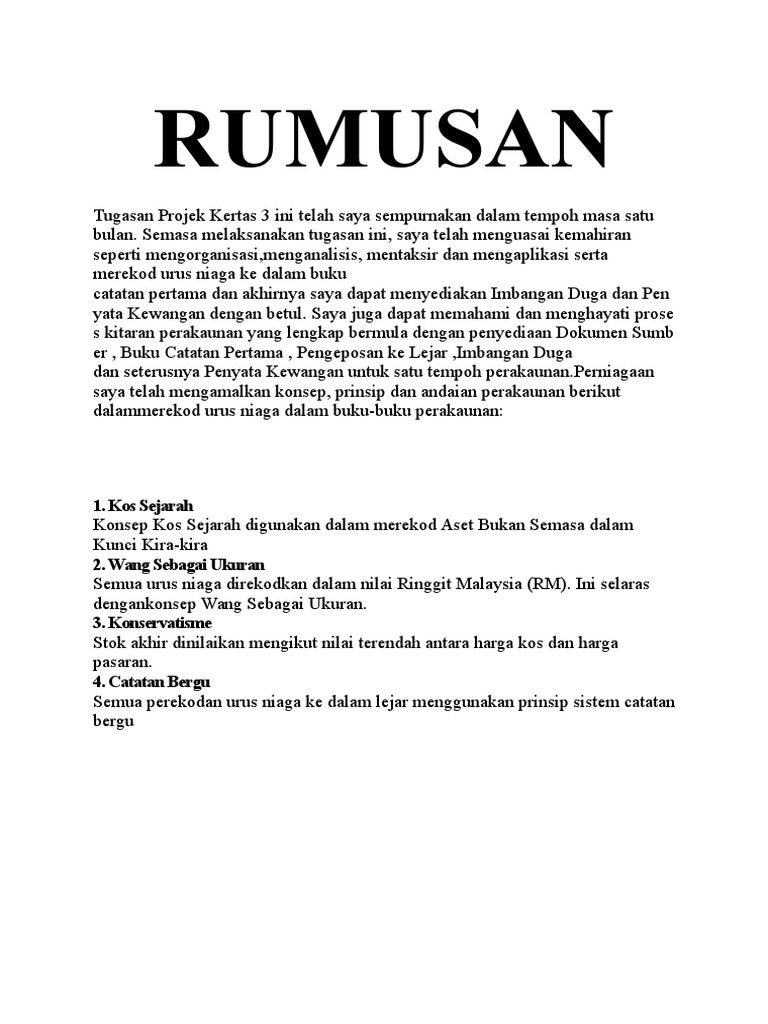 Rumusan Kerja Kursus Akaun