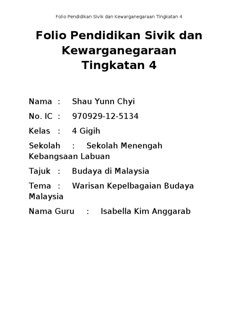 Folio Pendidikan Sivik Dan Kewarganegaraan Tingkatan 4