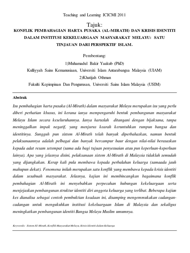 Pdf Masalah Dan Kaedah Penyelesaian Pewarisan Harta Pusaka Mualaf