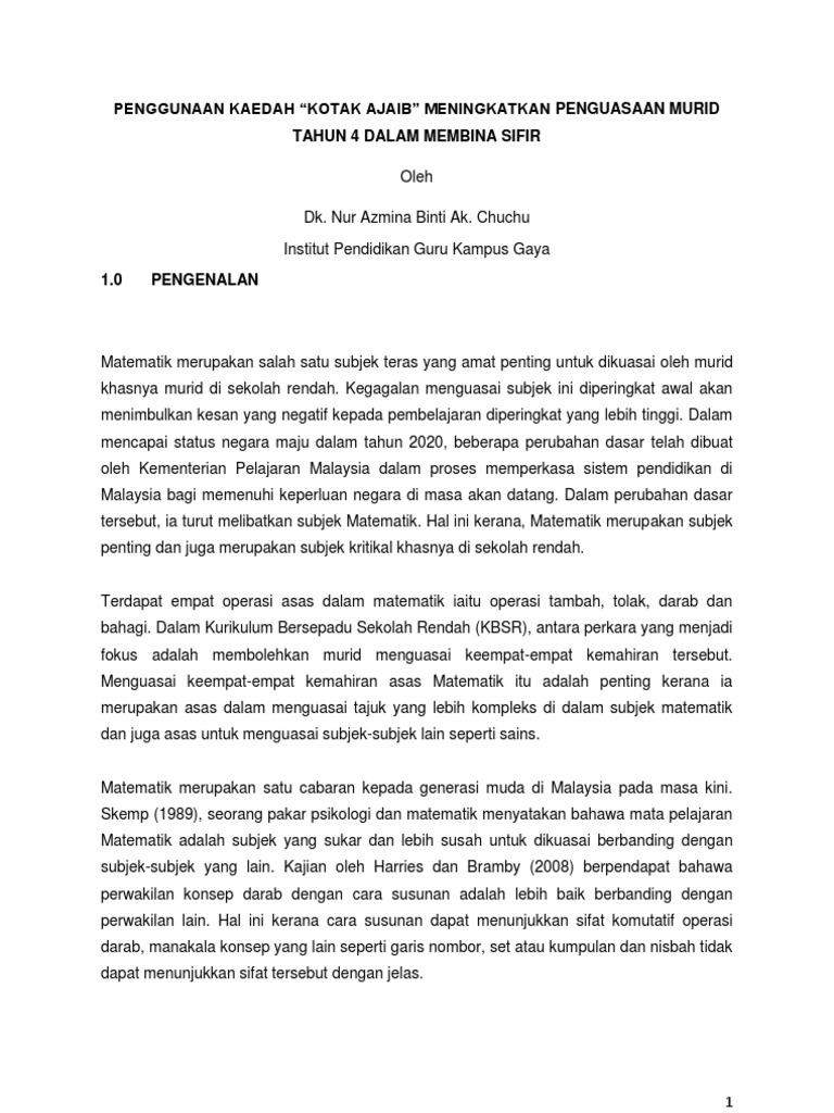 Proposal Kajian Tindakan Matematik Tahun 1