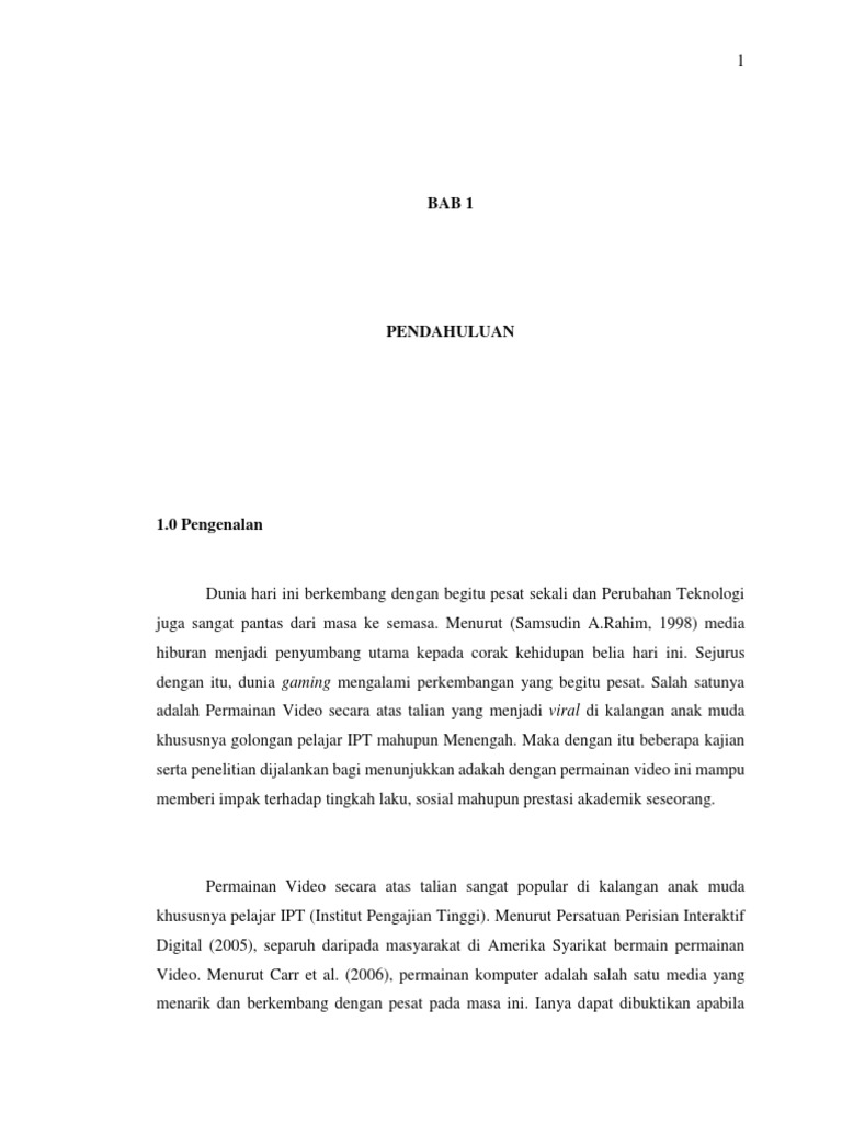 Satu Kajian Kesan Permainan Video Atas Talian Ke Atas Pelajar Ipt