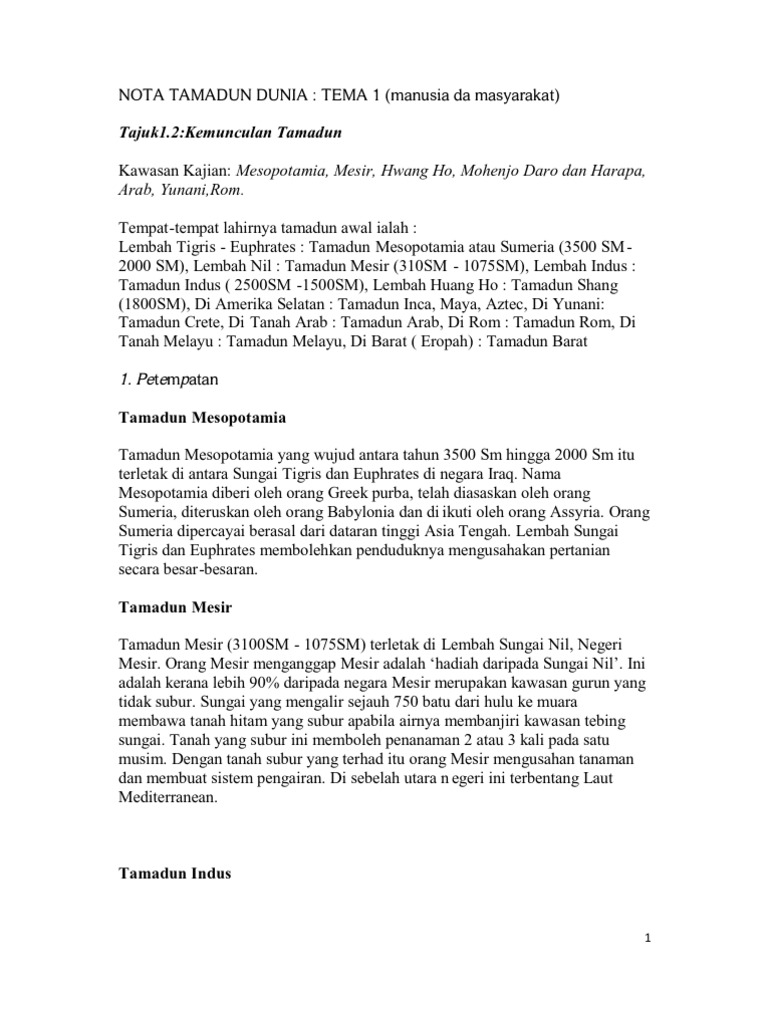 Kajian Kes Tamadun Awal Dunia