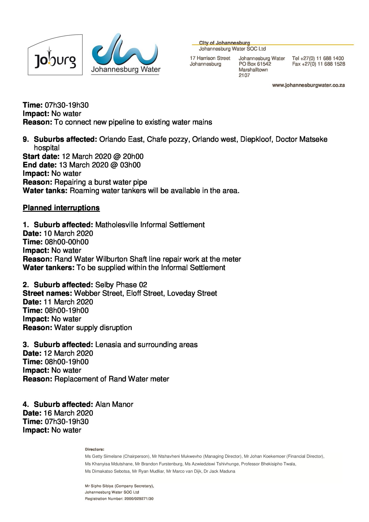 Johannesburg Water On Twitter Waterupdates Daily Water Supply
