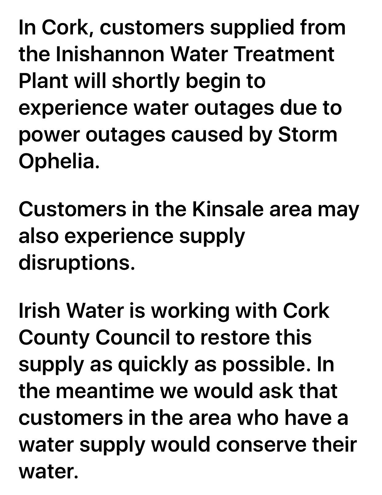 Eoin English On Twitter Irish Water Says Power Outages Have Hit Some Water Supply Plants In Cork Kinsale Innishannon Supplies Affected Ophelia Iestaff Https T Co Bxw6hbehkl